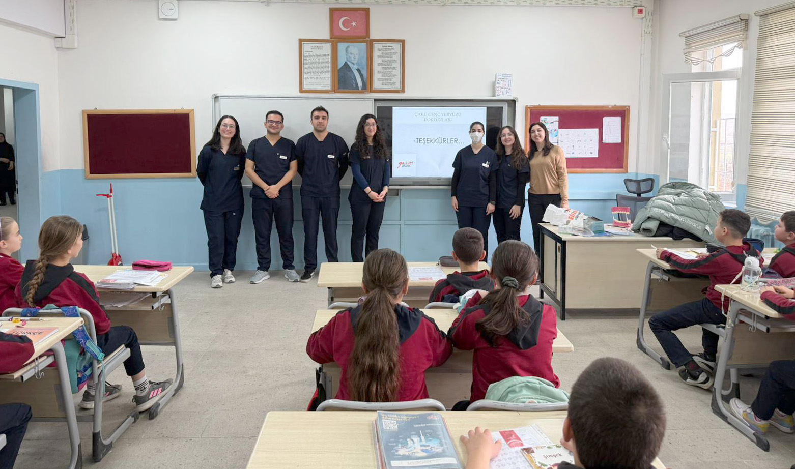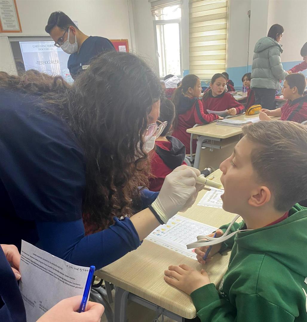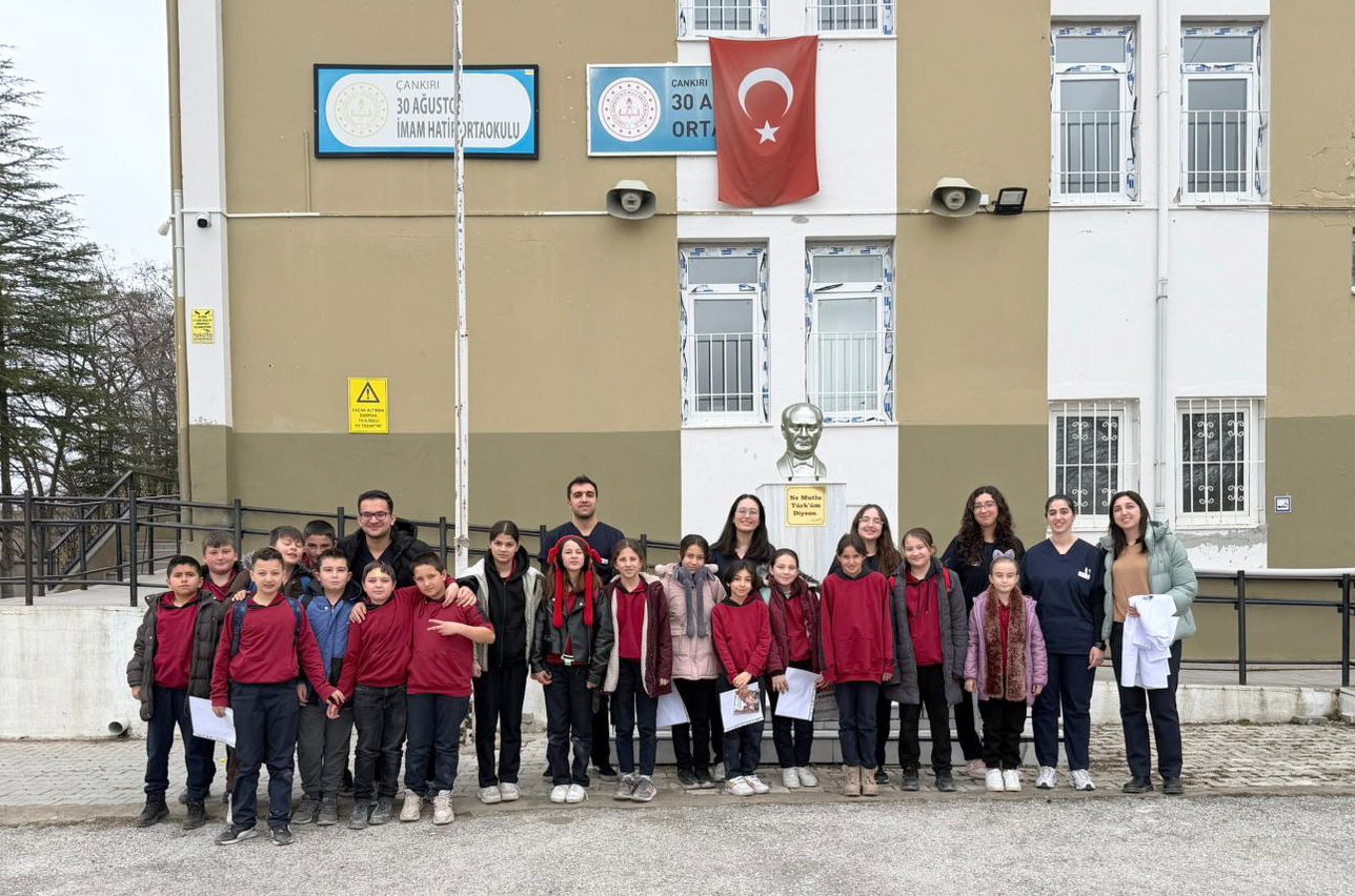 Çankırı Karatekin Üniversitesi (ÇAKÜ) Diş Hekimliği Fakültesi öğrencilerinden oluşan Genç Yeryüzü Doktorları Topluluğu tarafından, toplumsal katkı faaliyetleri kapsamında ortaokul öğrencilerine yönelik ağız ve diş sağlığı taraması gerçekleştirildi.