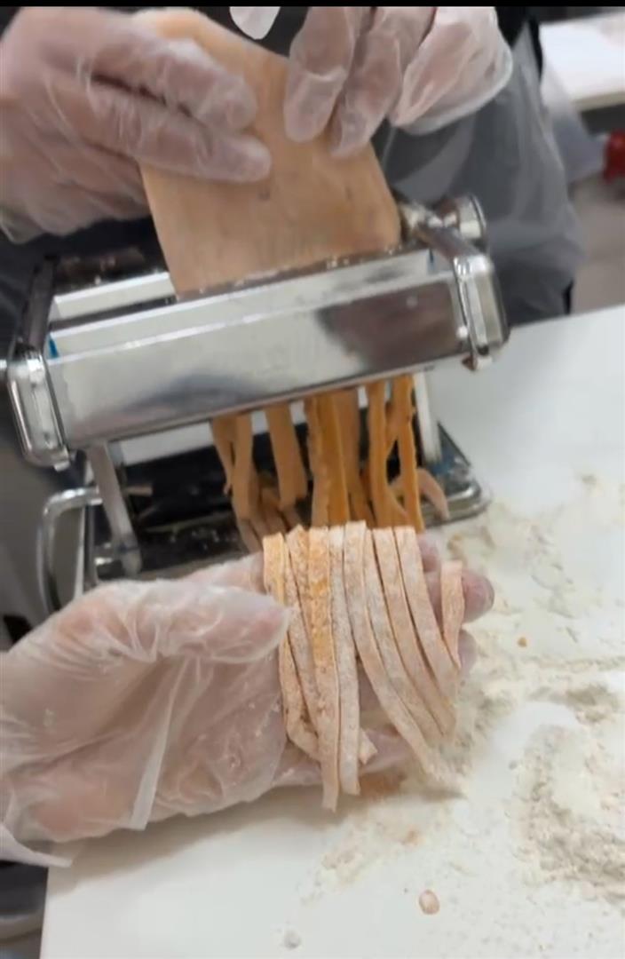 Uygulama aşamasında katılımcılar tarafından hazırlanan hamurlar küçük parçalara ayrıldı, makarna makinesi yardımıyla açılarak ince şeritler hâlinde kesildi ve unlanarak pişirmeye hazır hâle getirildi. Bir aşçı eşliğinde pişirilen makarnalar, ardından tabaklanarak servise sunuldu. Katılımcılar tarafından hazırlanan pesto ve arrabbiata soslar da makarnalara eklenerek sunum tamamlandı.
