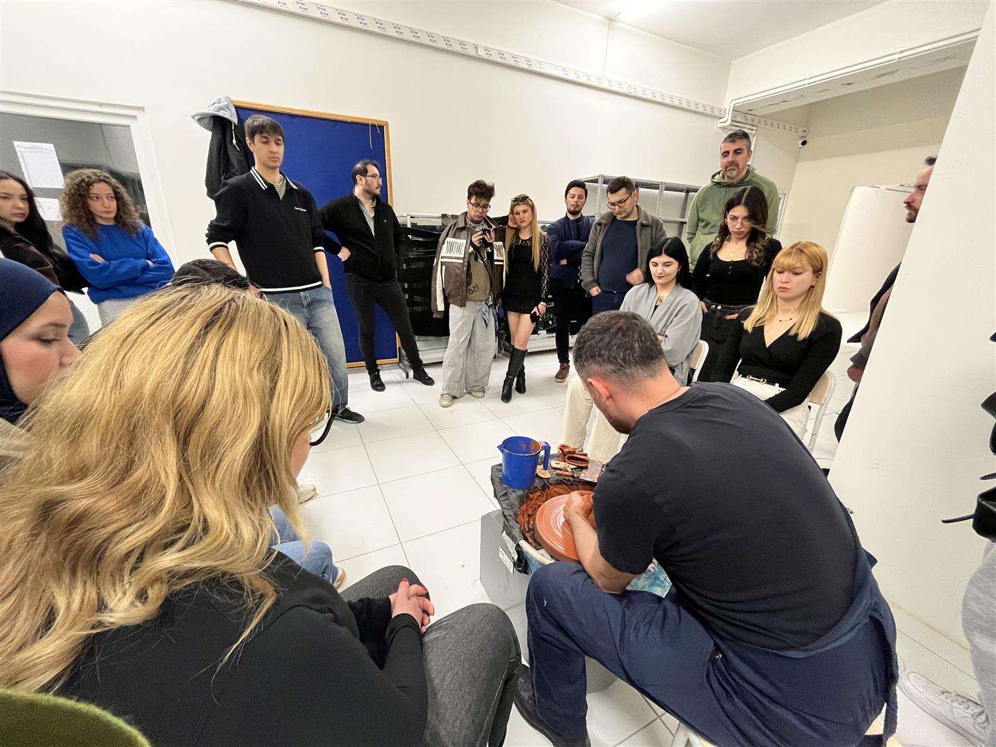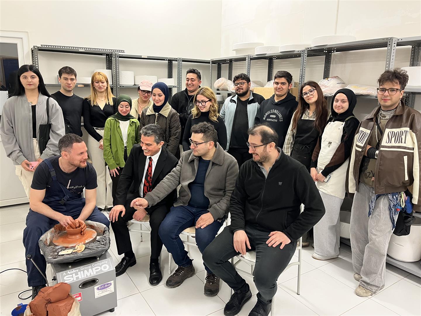 Sanat, Tasarım ve Mimarlık Fakültesi öğrencilerine yönelik gerçekleştirilen etkinlikte; seramik ve çömlekçilik tarihine ilişkin temel bir çerçeve sunulması, çömlekçi çarkının kullanımının uygulamalı olarak tanıtılması ve öğrencilerin bu alandaki temel şekillendirme süreçlerini doğrudan deneyimlemeleri amaçlandı.