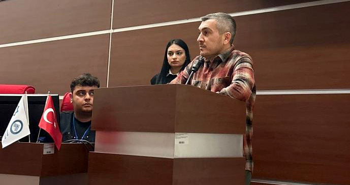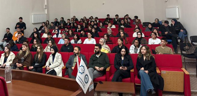 Etkinliğin devamında Dr. Öğr. Üyesi Mehmet Ali Demir, Erasmus ve staj süreçlerine ilişkin başvuru aşamaları ile dikkat edilmesi gereken hususlar hakkında katılımcılara bilgi verdi. Programın ilerleyen bölümünde ise öğrenci Selen Deniz, Erasmus sürecine dair deneyimlerini paylaşarak uygulamaya dayalı bir perspektif sundu.