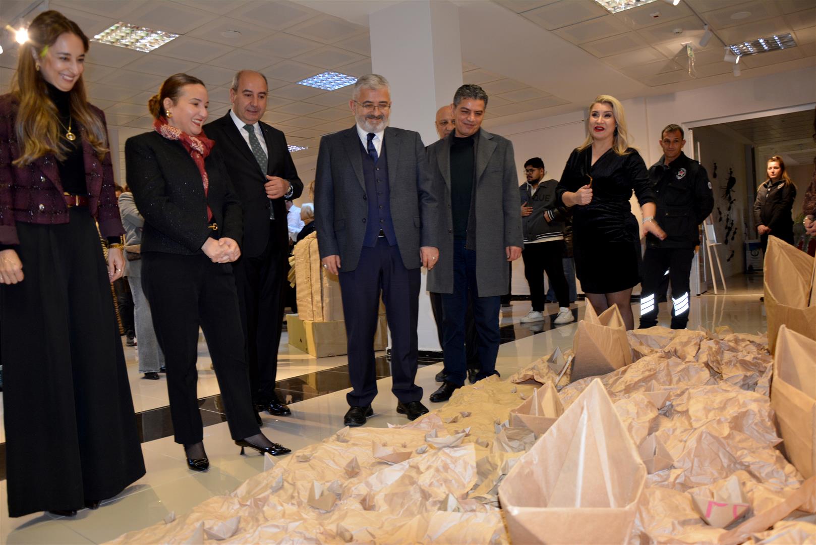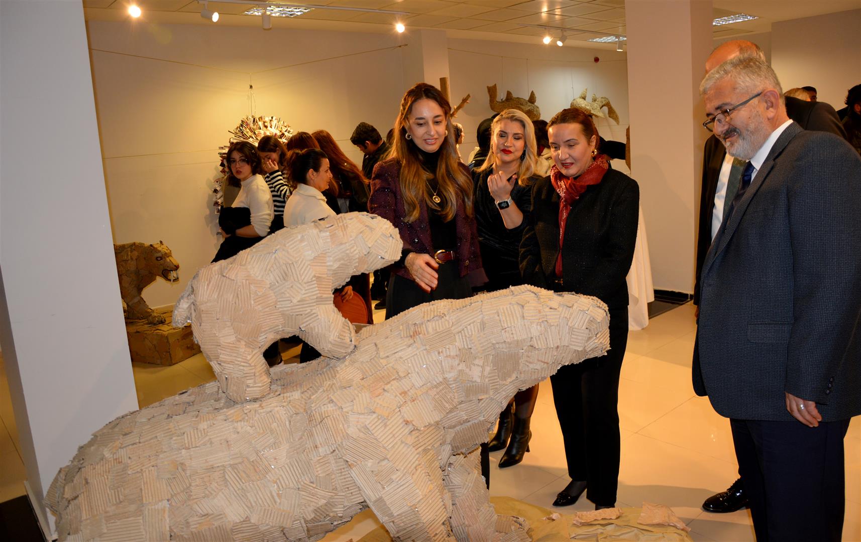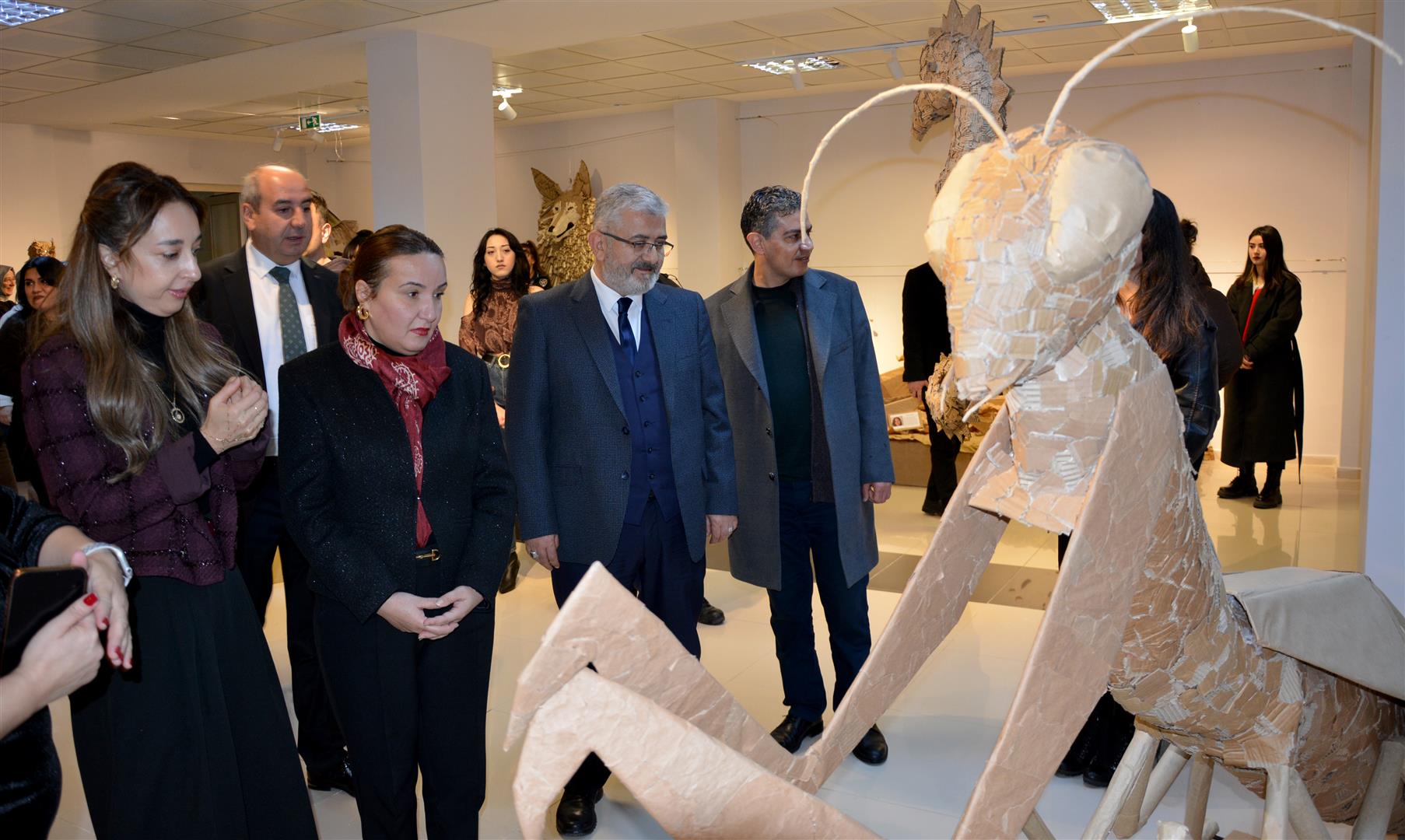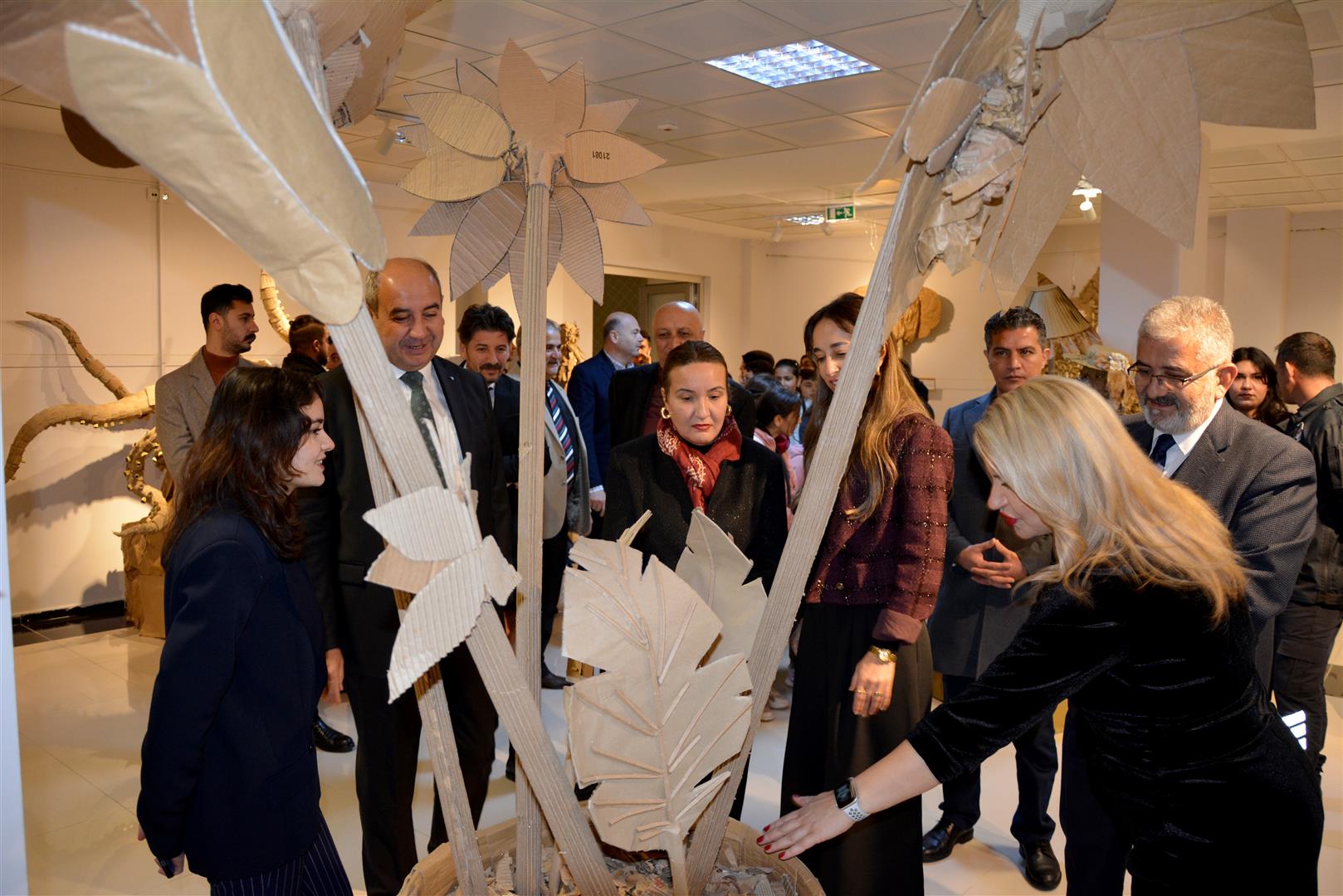 Sergide gazete kâğıtları, eski kartonlar ve kullanım ömrünü tamamlamış ambalajların uzun bir emeğin ardından sanatın estetik diliyle yeniden yorumlandığını dile getiren Öcalan, projede emeği geçen öğrencilere ve SKS Daire Başkanlığına teşekkür etti.