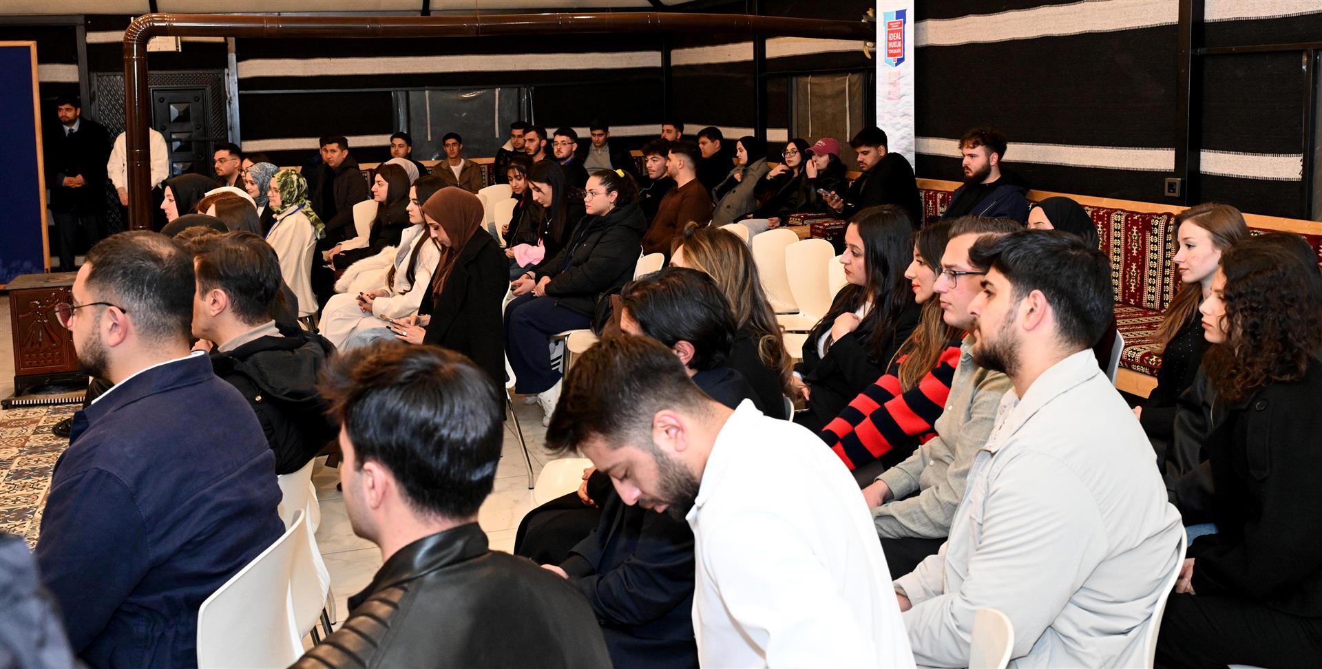 Söz Sende Hukuk Topluluğu, İdeal Hukuk Topluluğu ve ÇAKÜ Hak Topluluğu tarafından ortaklaşa düzenlenen etkinlik, Uluyazı Yerleşkesi’nde bulunan Selçuklu Otağı Oba Çadırı’nda yapıldı.