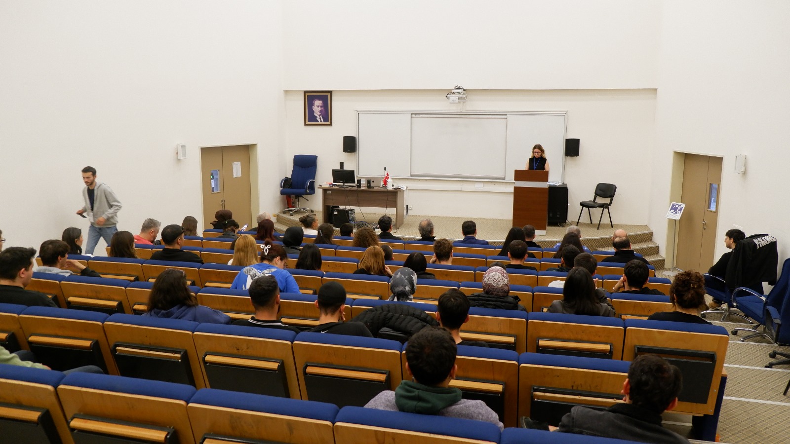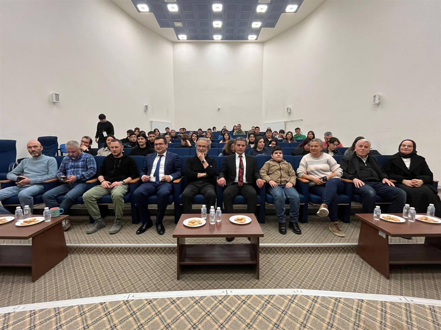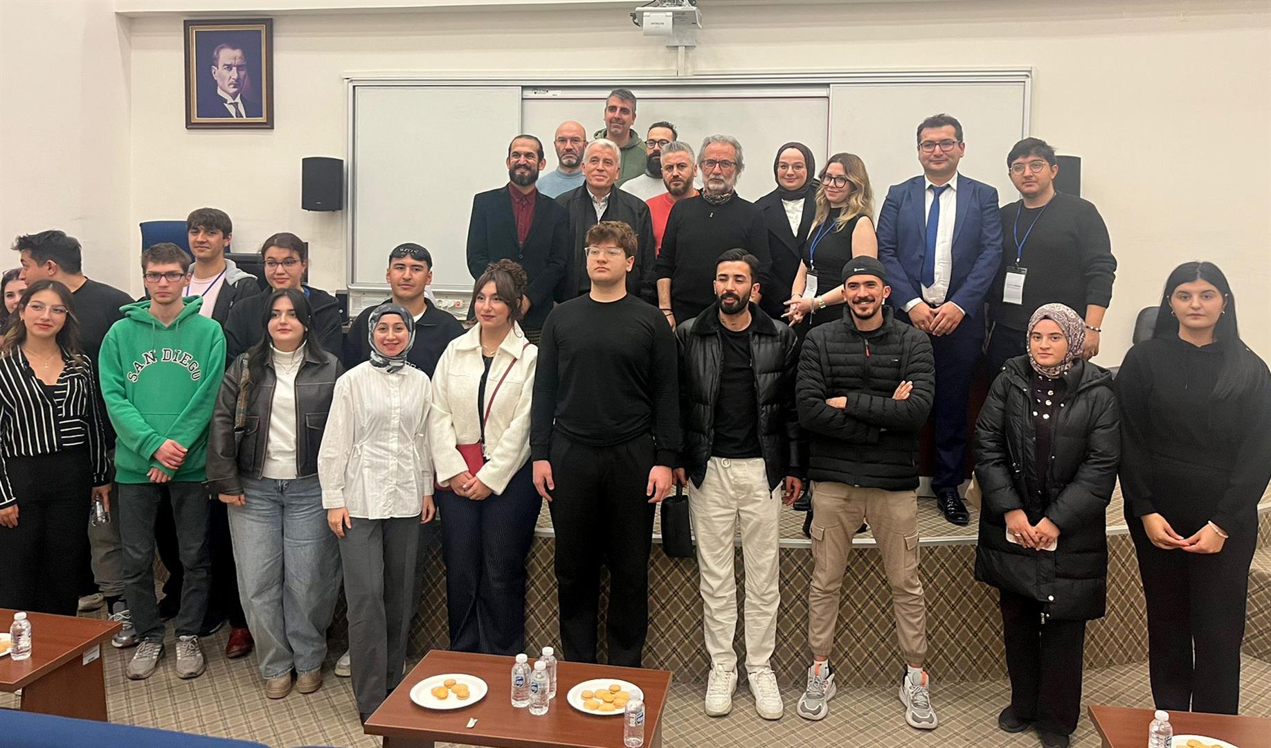 27 Kasım 2025 Perşembe günü İktisadi ve İdari Bilimler Fakültesi Mavi Salon’da düzenlenen etkinliğe, Sanat, Tasarım ve Mimarlık Fakültesi Dekanı Prof. Dr. Ersoy Yılmaz, Grafik Tasarım Bölüm Başkanı Dr. Öğr. Üyesi Rasim Sarıkaya, akademik personel ve öğrenciler katıldı.