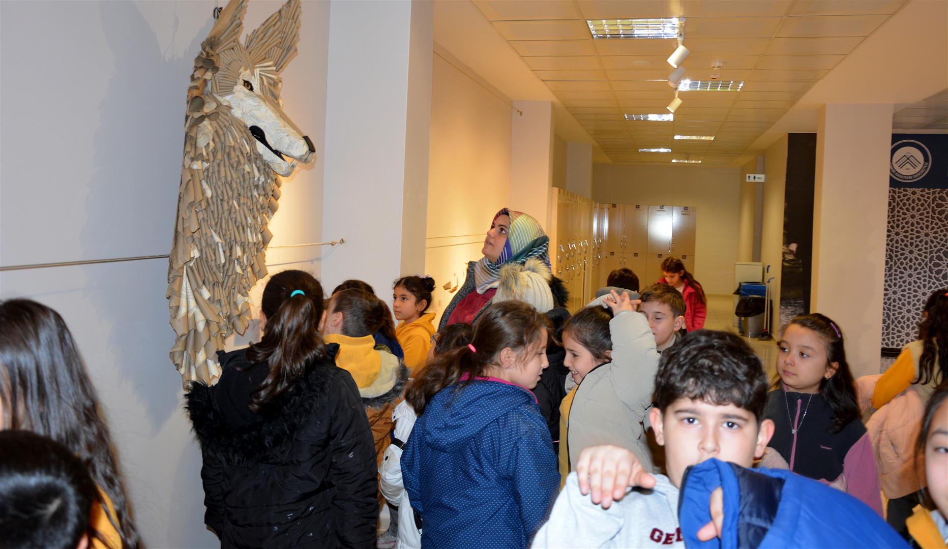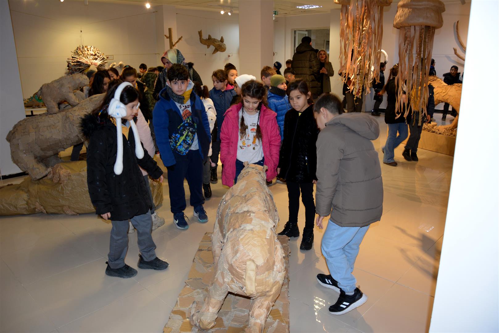 Öğretmenleri nezaretinde gerçekleştirilen ziyaret kapsamında öğrenciler, atık malzemelerden oluşturulan heykelleri yakından inceleme fırsatı buldu.