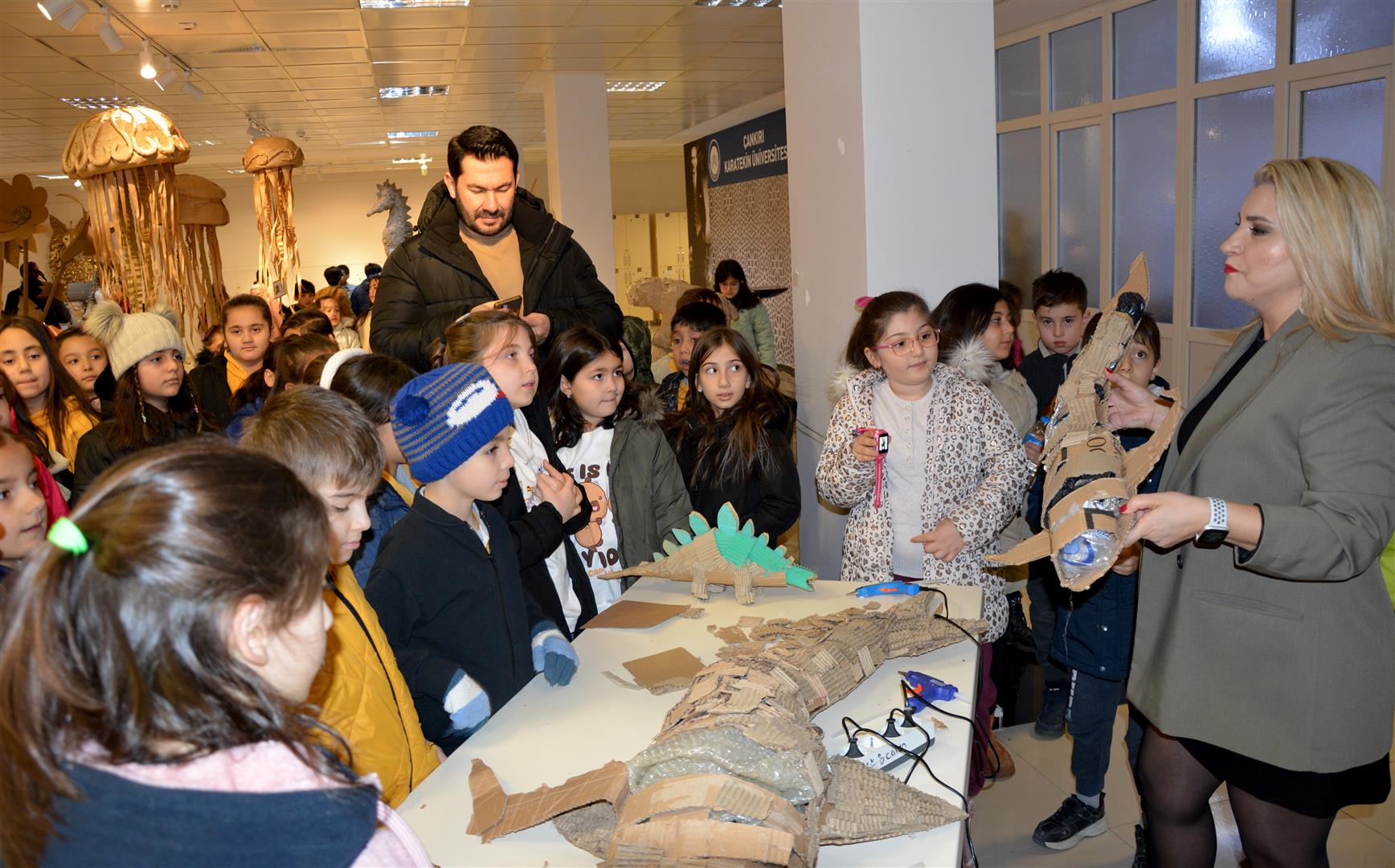 Çankırı İlker Tuncay İlkokulu 3. sınıf öğrencileri, Çankırı Karatekin Üniversitesi’nde (ÇAKÜ) açılan Atık Heykel Sergisini ziyaret etti.